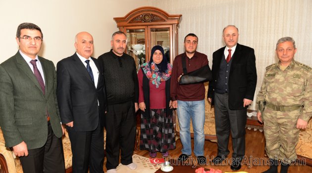 Erzurum Valisi Seyfettin Azizoğlu, Kayseri’de teröristler tarafından yapılan bombalı saldırı sonucunda yaralanan Piyade Er Yusuf Ergün’ü baba evinde ziyaret ederek geçmiş olsun dileklerinde bulundu.