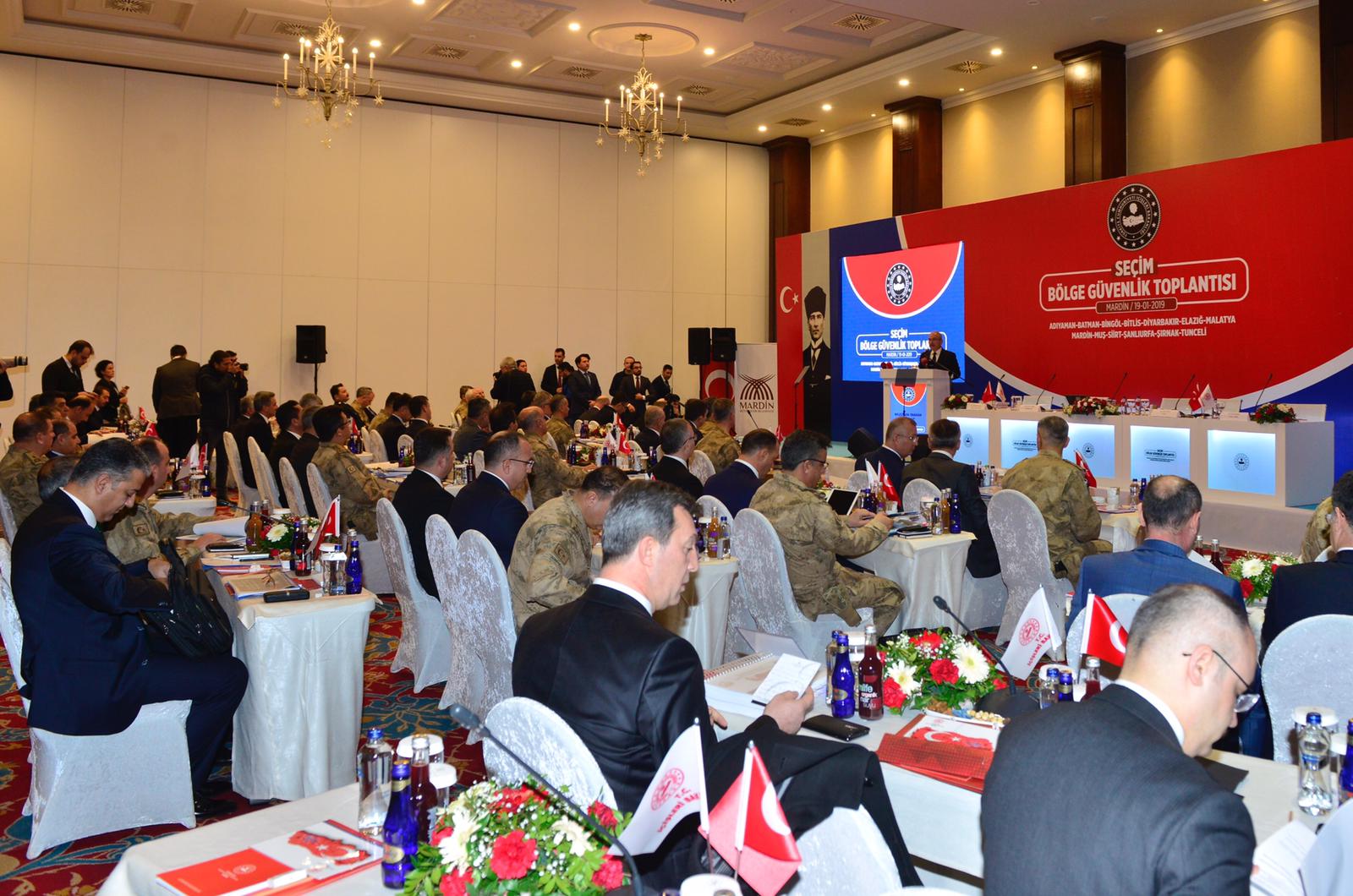 Katılımcılara hitaben bir konuşma yapan İçişleri Bakanı Süleyman Soylu; Yapılan bu toplantılarda seçimin her anlamdaki güvenliğini ve sağlıklı bir seçim ortamı oluşturmak için alacakları tedbirleri gözden geçirdiklerini bildirdi. Bunların içinde miting ve propaganda güvenliği, seçim sandığı ve oy kullanılacak mekanların ve sayım güvenliği, sonuçların açıklanmasından sonra oluşabilecek herhangi bir taşkınlığa meydan vermemek için alacakları güvenlik önlemlerinin bulunduğunu aktardı. Ayrıca kampanya ve oy verme günü çeşitli mecralardan yayılmak istenebilecek ve toplumda infiale sebep olabilecek maksatlı yayın ve paylaşımlara karşı da önlemleri, yine bu toplantılarda tartışıyor olacaklarını ifade etti.Soylu, Tek ve temel hedeflerinin hem kampanya süreçlerinin güvenliğini hem de seçmen iradesinin sandığa sağlıklı ve özgürce yansımasını temin edebilmek olduğunu, bunun için il özelinde dikkat etmeleri gereken konuları, fiziki, teknik ve beşeri kapasiteyi, varsa bu noktadaki eksiklikleri istişare etmeye ve bunları gidermeye çalışacaklarını belirtti.Arka arkaya gelen seçim süreçlerinin, bakanlık olarak mevcut tecrübelerini daha da pekiştirdiğini anlatan Soylu, bu toplantılardan, önceki seçimlerde verim aldıklarını, bu yıl bunu daha üst bir noktaya taşıyacaklarını kaydetti.