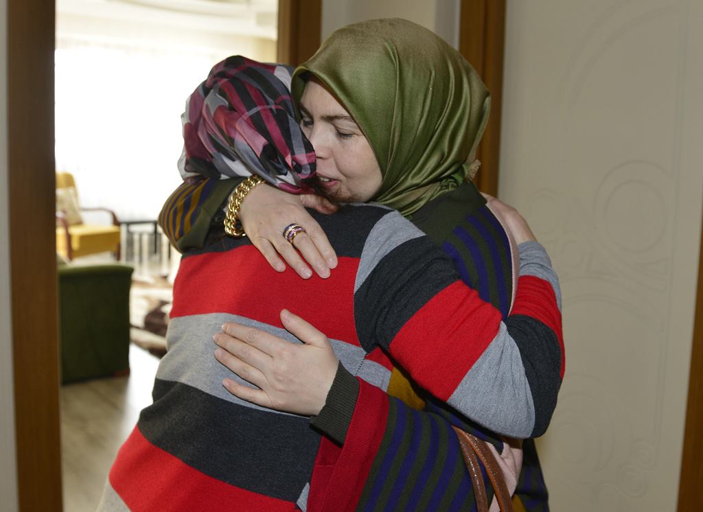 Vali Güzeloğlu ve eşi Ayşe Güzeloğlu; şehidin eşi Selda Öztekin, kızı Başak ve oğlu Ramazan Öztekin ile şehidin yakın akrabalarının bulunduğu ziyaret sırasında duygu dolu anlar yaşandı.