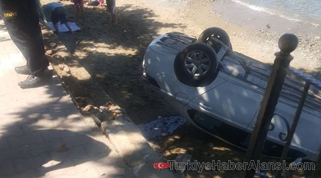 Yalova'nın tatil merkezlerinden Çınarcık İlçesi'ne bağlı Esenköy Beldesi'nde sürücüsünün kontrolünden çıkan otomobil plaja girdi. 74 yaşındaki sürücü kazayı yara almadan atlatırken, şans eseri plajda bulunanlardan yaralanan olmadı.Yalova'nın Çınarcık İlçesi'ne bağlı Esenköy Beldesi'nde bulunan Kanarya Evleri Mahallesi'nde yokuş aşağı inerken fren sistemi boşayan otomobil, bir otomobile çarptıktan sonra, koruma demirini yıktığı plaja girerken çöp konteynerine de çarparak ters döndü.Sürücü ve plajda bulunanlardan yaralanan olmadığı kazayla ilgili soruşturma sürdürülüyor.