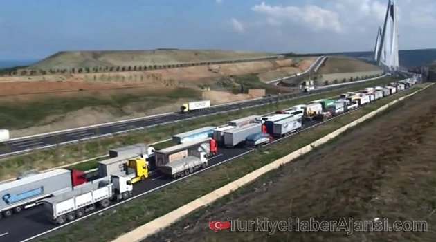 Yavuz Sultan Selim Köprüsünün Avrupa Yakası'ndaki ayağında bulunan kule vincin söküm çalışması nedeniyle 4 şeritli yolun 3 şeridi trafiğe kapatıldı. Güvenlik nedeniyle kapatılan şeritlerde çalışmalar sürerken en soldaki şeritten araçların kontrollü geçişi sağlandı.Bu sırada Avrupa Yakası'ndan köprüye girişte yaklaşık 5 kilometreyi bulan araç kuyruğu oluştu. Bazı şoförler durumu korna çalarak protesto ederken, bir kamyon şoförü 4 kilometrelik yolu 50 dakikada gelebildiğini belirtti.