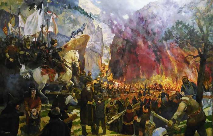 Ergenekon Dağı’nı eriterek yüklü bir devenin geçebileceği kadar bir yol açtılar ve Börteçine mihmandalığında buradan çıkıp, dünyaya yeniden Türk’ün dirilişini gösterdiler.
