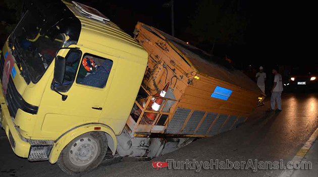 Olay Maltepe Bağdat Caddesi Küçükyalı mevkiinde saat 05.00 sıralarında meydana geldi. Edinilen bilgiye göre yol üzerinde oluşan küçük çapta çukurları kapatmak için asfaltlama çalışması yapan Büyükşehir Belediyesi Yol Bakım ve Onarım Müdürlüğü'ne bağlı asfalt kamyonu yoldaki çukur noktalara asfalt dökerken yolda bir anda çökme meydana geldi. Çökme nedeniyle kamyonun sol arka bölümü oluşan çukura gömülürken, kamyon şoförü olayla ilgili yetkilileri arayarak yardım istedi. Çökmenin yaşandığı yolun bir bölümü trafiğe kapatılırken, kamyonu kurtarmak için başlatılan çalışmalar sürüyor.