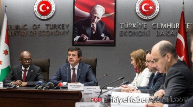 Ekonomi Bakanı Nihat Zeybekci, Burundi Dış İlişkiler ve Uluslararası İşbirliği Bakanı Alain Aime Nyamitwe ile iki ülke arasında tamamlanan Yatırımların Teşviki ve Korunması Anlaşmasının (YKTK) imza törenine katıldı.Anlaşmanın imzalanması sonrası açıklama yapan Zeybekci, "Şu anda Afrika'da 10 milyar dolara yaklaşan Türk yatırımı var" dedi.Merkez Bankası'nın yarın vereceği faiz kararı ile ilgili konuşan Zeybekci, TCMB'nin bugüne kadarki faiz kararlarını son derece isabetli bulduğunu ifade etti.Zeybekci, "Türkiye OECD, G20 ile kıyasladığımızda gerçekten takdire şayan yüzde 5 büyümeyi yakaladı. Bu yılın ikinci çeyrek büyümesi de yine başarılı gelecek. İhracatın büyümeye katkısı çok olacak" şeklinde konuştu.Bakan Zeybekci, inşaat demirinde gümrük vergisini yüzde 10'a indirecek Bakanlar Kurulu kararının kısa sürede yürürlüğe gireceğini açıkladı. Zeybekci, kararın bugün yarın onaylacağı ifadesini kullandı.Tedarik sıkıntısı ile gündeme gelen inşaat demirinde, mevcut durumda yüzde 30 olarak uygulanan gümrük vergisinde yarıdan fazla indirime gidilecek. Çelik üreticileri, referandum sonrası inşaat sektöründe birden artan talep nedeniyle kısa dönemli bir tedarik sıkıntısı yaşandığını ancak şu anda bir arz sorunu bulunmadığını savundu. Buna karşın Bakanlık geri adım atmadı. Vergideki indirimin, piyasada yaşanan arz sorunu ortadan kalkana kadar süreceği biliniyor.